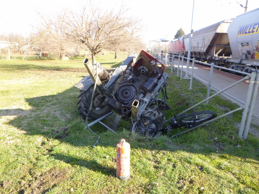 Szerdán hajtott vonat elé egy traktor Kutason egy vasúti átjáróban. Az esetről csütörtökön közölt képetek a katasztrófavédelem.