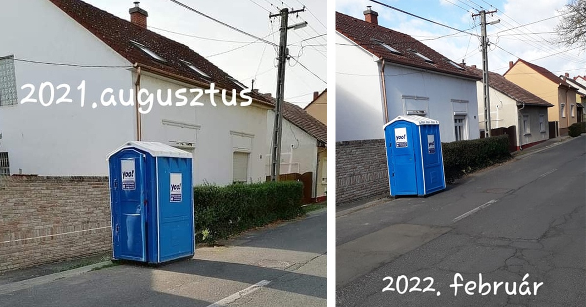 Még tavaly nyáron végeztek felújítási munkálatokat a Pázmány Péter utcában, akkor helyezhették ki a munkások számára a mobilvécét. A kivitelező azóta már levonult, a budi azonban ottmaradt. Olvasónk két képet is csatolt: az egyik augusztusban, a másik pedig idén februárban készült.