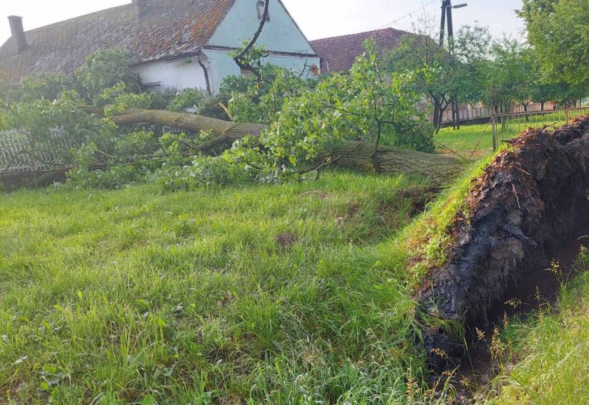 Leszakította a villanyvezetéket és egy kerítésre zuhant egy húsz méter magas fa, amikor gyökerestől kifordult a földből, egy közeli ház tetejéről pedig lesodort néhány cserepet.