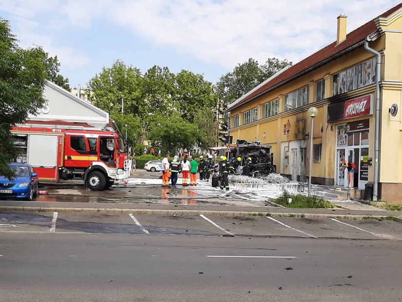Helyszíni beszámolók szerint a járműben tartózkodó eladó először sistergésre lett figyelmes, ezt követően lobbantak fel a lángok. Úgy tudjuk, személyi sérülés nem történt és a kiérkező tűzoltók eloltották a tüzet.