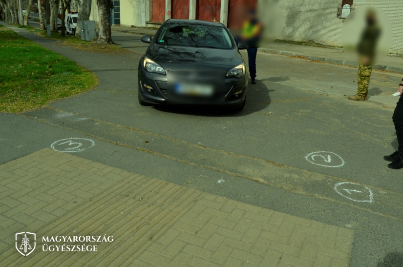 A fényképeket a nyomozó hatóság a helyszíni szemle során készítette, melyen a vádlott autójának a járdára felhajtást követő haladását, illetve a gyalogosok elhelyezkedését egy helyettesítő gépkocsival szemléltette.