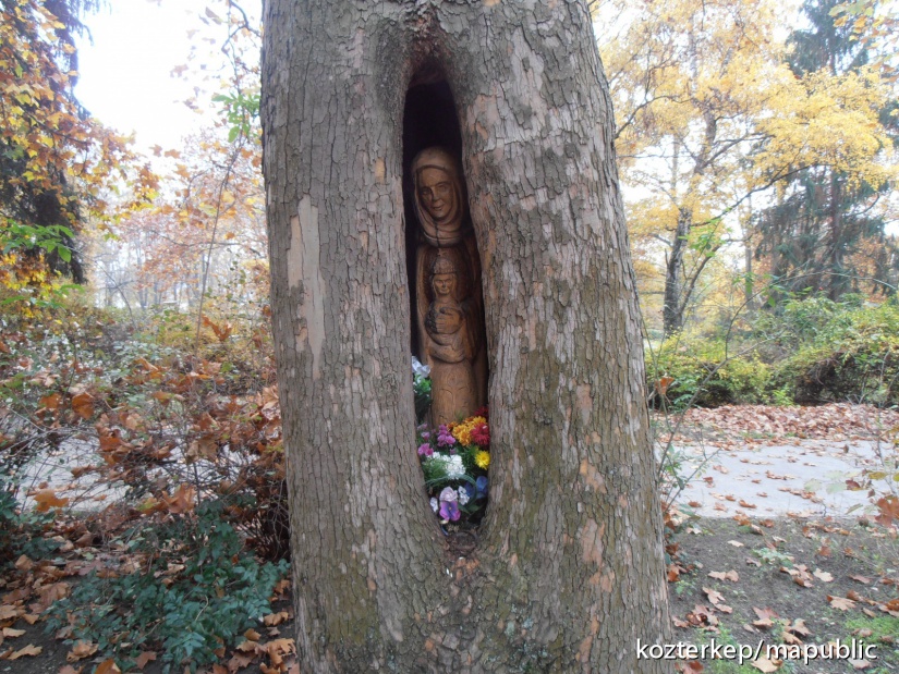 Az urna egyébként annál a fánál van, amelyikben egy Szent Anna-szobor van elhelyezve. Még 2006 környékén sétált arra Tóth István, amikor észrevette, hogy lángol a fa belseje. Eloltotta és elhatározta, hogy szobrot faragtat bele. A Szűz Mária édesanyját, Szent Annát ábrázoló alkotást Berkesi Gyula faragta ki és Fábry Kornél plébános áldotta meg.