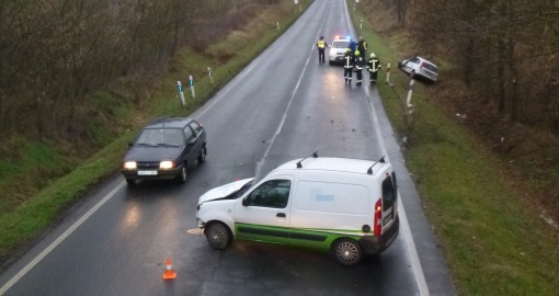 Frontálisan karambolozott két személygépkocsi hétfőn a 61-es főúton, Baté térségében. A katasztrófavédelem közlése szerint az ütközés következtében az egyik jármű az árokba csapódott, a másik pedig az úttesten állt meg.