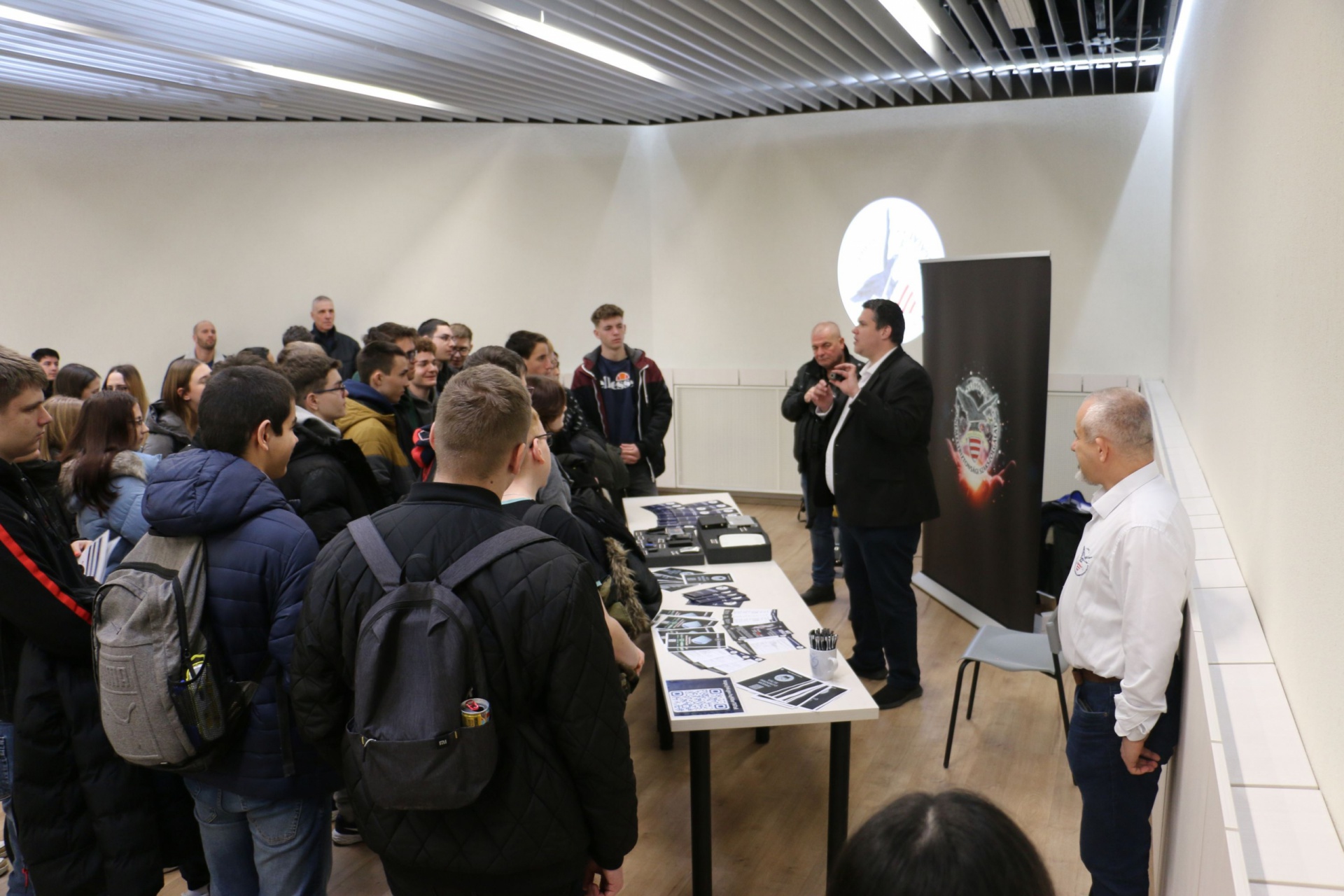 A diákok február 11-én két helyszínen - az iskolában és a rendőrségen - vehettek részt interaktív foglalkozásokon, bemutatókon. A főkapitányságon Kiss Tamás László nemzetbiztonsági alezredes, a Nemzeti Kibervédelmi Intézet főosztályvezetője tartott előadást.
