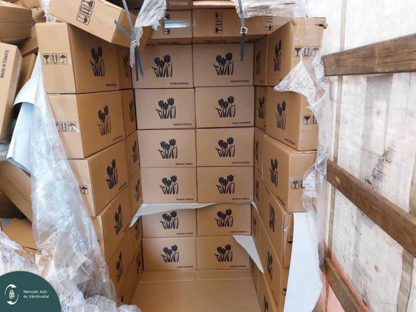 Mintha a régi francia filmből léptek volna elő a szereplők: papírpoharas dobozok, fekete tulipán mintájú kartonok – a „díszlet” mögött azonban 42 ezer doboz magyar zárjegy nélküli cigaretta lapult. A Nemzeti Adó- és Vámhivatal (NAV) Bevetési Igazgatóságának pénzügyőrei nem dőltek be a látványnak.