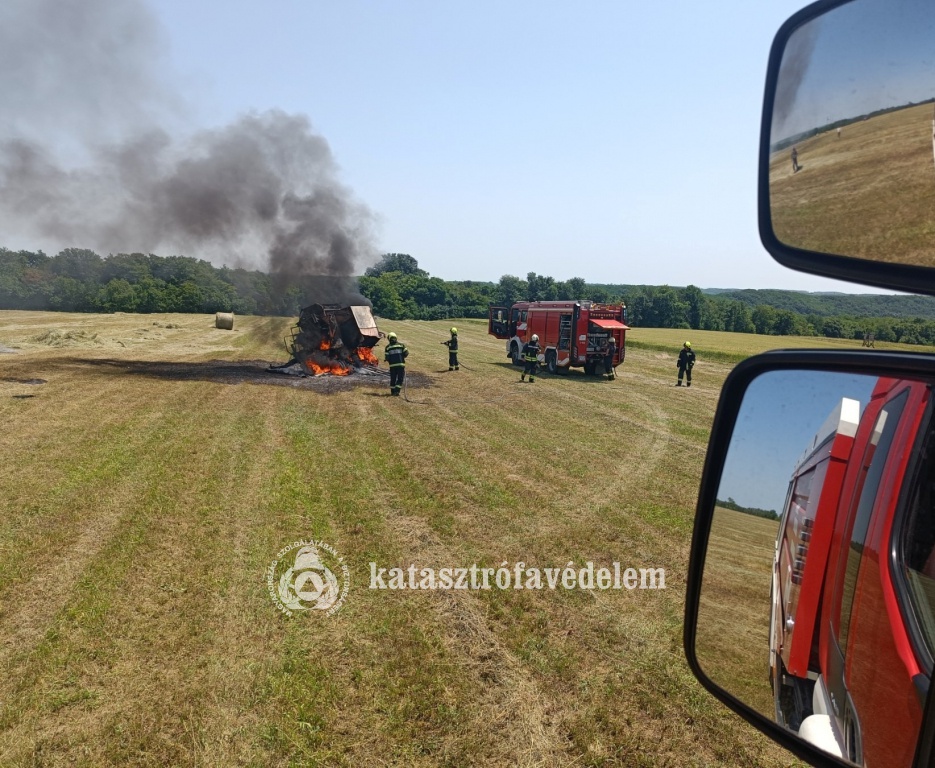 Kigyulladt egy bálázógép munkavégzés közben péntek délután, Szabáson. A dolgozók porral oltókkal megkezdték az oltást, majd a barcsi és a nagyatádi hivatásos tűzoltók fékezték meg a tüzet. Majd hőkamerával is átvizsgálták a bálázót, a tűz nem terjedt át a környezetére.