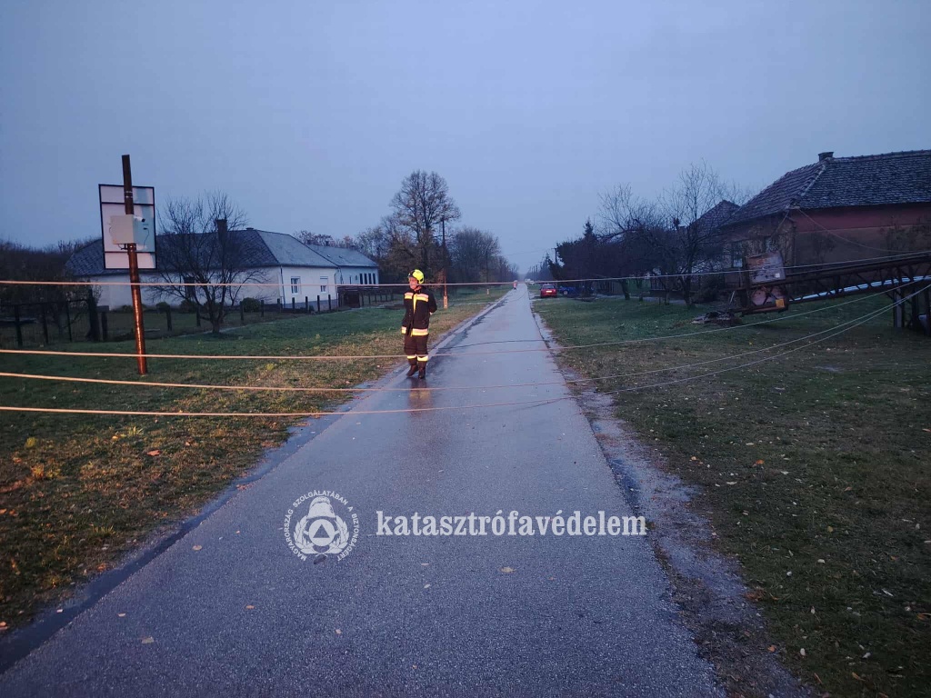 Felsővezetékre dőlt egy fa Kálmáncsán, a Rákóczi utcában, amely következtében kidőlt egy transzformátorral szerelt villanyoszlop és öt továbbit magával döntött.