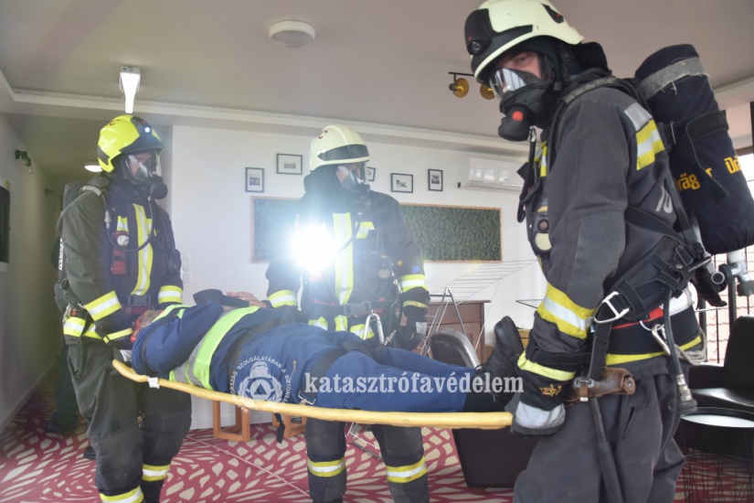 Egy borhotelben csaptak fel a lángok és a háromszintes épület rövid idő alatt füsttel telt meg. Egy dolgozónak és két vendégnek nem sikerült kijutnia. A melegítőkonyhában egy gázpalack felrobbant, amely felerősítette a tűz intenzitását – ennyi információt kaptak a vármegyei ellenőrző gyakorlat helyszínére elsőként érkező böhönyei önkormányzati tűzoltók. A gyors helyzetfelismerést követően, áramtalanították az épületet, majd a marcali tűzoltókkal azonnal a sérültek keresésére indultak.