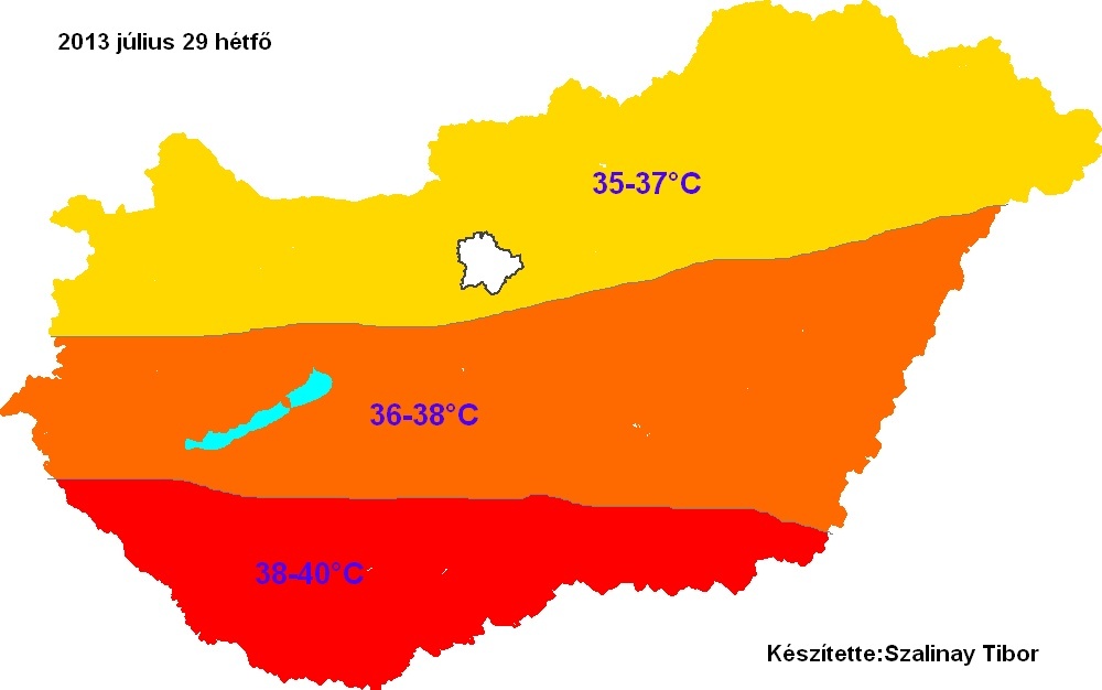 Kaposvári időjósunk, Szalinay Tibor szerint a nagy meleg csúcspontja várhatóan hétfőn lesz, ekkor a déli területeken a maximum hőmérséklet megközelíti a 40 fokot is árnyékban.