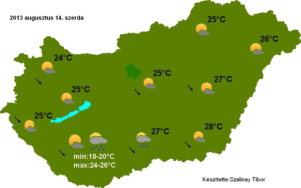 Szerdán többnyire felhős-napos időszakok váltakoznak majd, a délutáni hőmérséklet 25 fok körül fog alakulni.