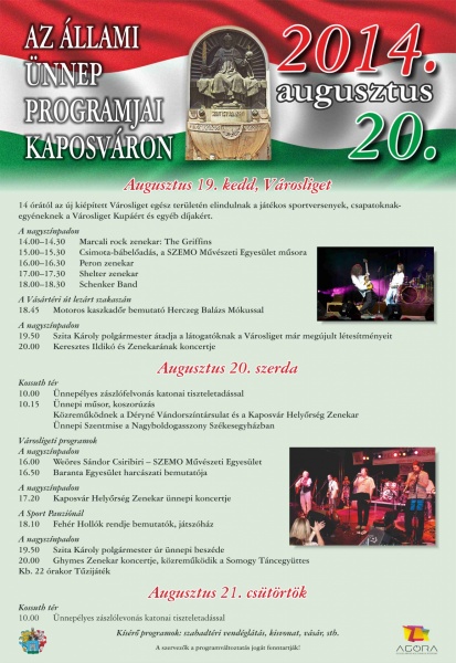 Városrészek csatája, futó- és kenuverseny, Keresztes Ildikó-koncert, homokos plázs, úszó szökőkút, játszótér és KRESZ-park, valamint piknikhangulat várja a kaposváriakat augusztus 19-én.