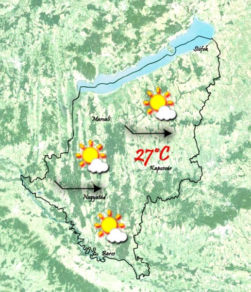 Szombatra virradóra egy kompakt csapadékzóna éri el a térségünket így lehet zápor, zivatar, de ez a tömb el is hagyja a megyét a délelőtti órákra. A felhőzet elkezdmajd csökkeni, és a reggeli 13°C után egy 25°C-os friss délután fog következni. A szél nyugati irányból fúj majd gyenge erősséggel.