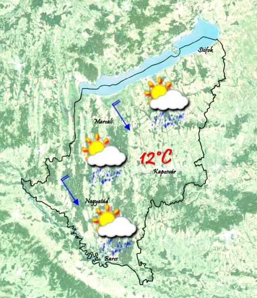 Szerdán reggel újabb csapadékra van kilátás. A minimumhőmérséklet 7 °C körül marad. A déli óráktól kezdve újra elkezd szakadozni a felhőzet, ám ezt már élénk, hideg északnyugati szélben teszi. Elkezdődik a lehűlés. Maximum 12 °C-ig emelkedik délutánra a hőmérséklet, de ezt jóval kevesebbnek fogjuk érezni.