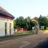 Mernyén belül elhagyta rakományát egy traktor, így nagy mennyiségű búza került az úttestre. A jármű vezetője egyedül próbálja eltakarítani az úttestre ömlött magokat, a forgalom rendőri biztosítással halad.