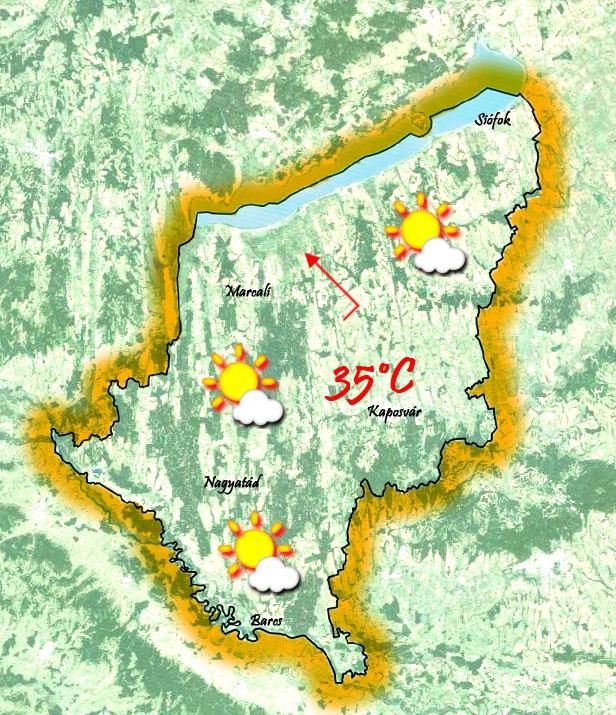 Péntek délután gomolyfelhők képződhetnek a 35 °C-os melegben. Este fele a megye keleti részén lehet zápor, esetleg zivatar. Gyenge keleti szél fog fújni.