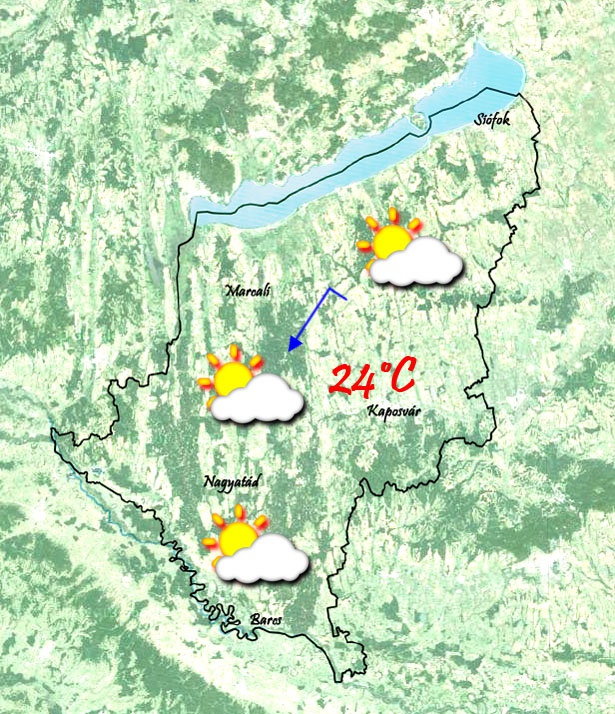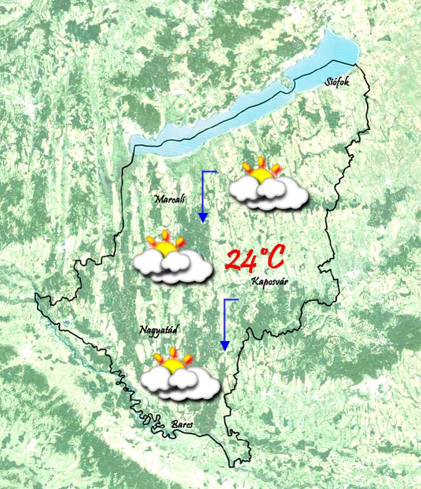 Szerda délután változóan, olykor erősen felhős lesz az égbolt. Maximum 25 °C-ig emelkedik a levegő hőmérséklete. Gyenge északi szél fogja frissíteni a levegőt.