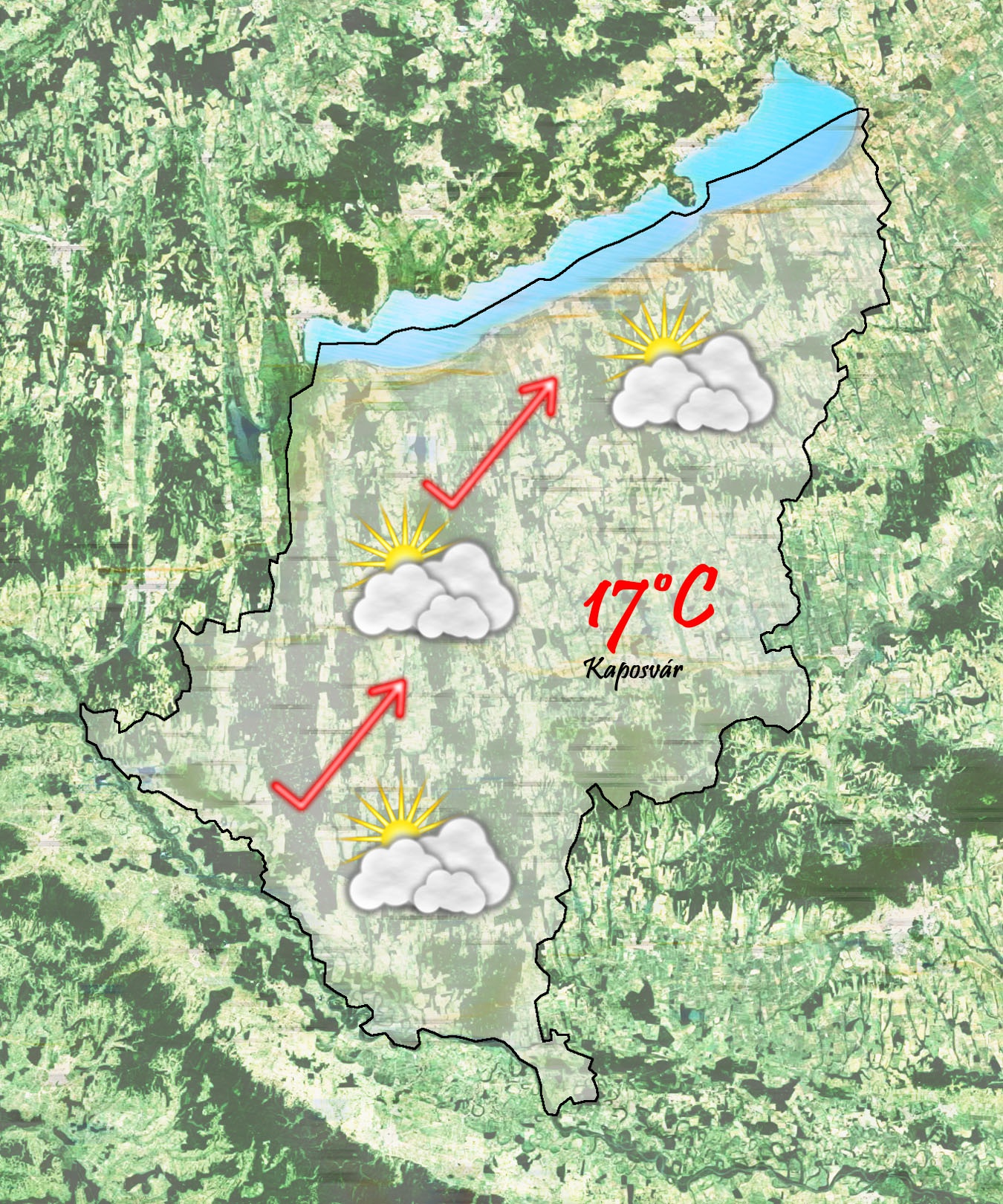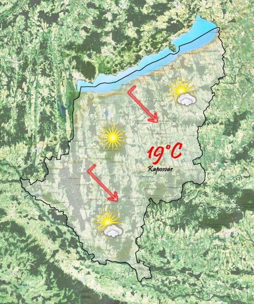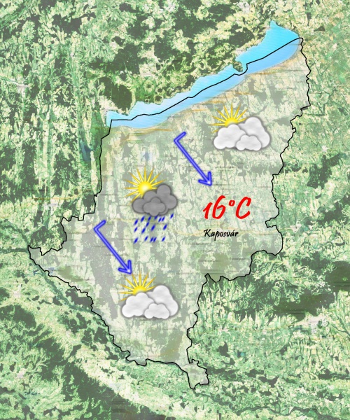 Szerdán reggel egy front vonul át felettünk. Eleinte mindenhol megnövekszik a felhőzet és kisebb zápor is előfordulhat. 7 °Cig hűl a levegő. Napközben felszakadozik a felhőzet és a délutáni felhőátvonulásból továbbra is lehet kisebb csapadék. 15 °C-os maximumhőmérsékletre számíthatunk.