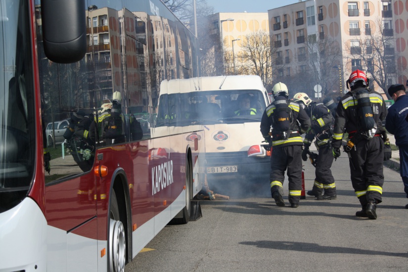 A helyszínre érkező kaposvári hivatásos tűzoltók két oldalról - a sűrű füst miatt teljes légzésvédelem mellett - közelítették meg a helyszínt, s első lépésként áramtalanították a tankoló autóbuszt valamint a töltőállomást. A kisbusz motorteréből kicsapó lángokat sikerült időben megfékezni, így azok nem terjedtek át az utastérre.