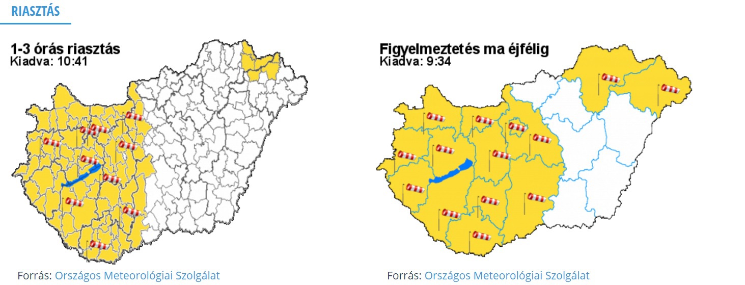 Citromsárga figyelmeztető előrejelzést adtak ki Magyarország területére hétfő éjfélig: Ma a Dunántúlon az északi, északnyugati szelet nagy területen viharos (60-80 km/h) széllökések kísérik az esti órákig. A késő délelőtti órákig síkvidéken főként a Dunántúl középső területein egy-egy helyen 85-90 km/h körüli széllökés is kialakulhat. Északkeleten kisebb területen (Borsod megye északkeleti, Szabolcs megye északnyugati, nyugati részén) a délelőtti óráktól estig egy-egy 70 km/h körüli széllökés kísérheti az északkeleti szelet - írta a met.hu.