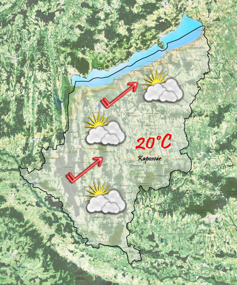 Pénteken kora hajnalban felszakadozik a felhőzet és 11°C-ig hűl a levegő. Napközben újra megszaporodnak a felhők, de ezekből csak elvétve várható zápor vagy zivatar. Délutánra 20°C-ig melegszik a levegő. A délnyugati szél egyre inkább megélénkül.