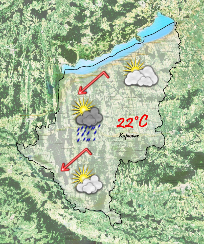 Péntek délután változóan felhős lesz az ég. A megszaporodó gomolyfelhőkből elszórtan kialakulhat zápor. A felhők ellenére a napsütés lesz túlsúlyban. Mérsékelten fog fújni az északi szél, 22 °C-ig melegszik az idő.