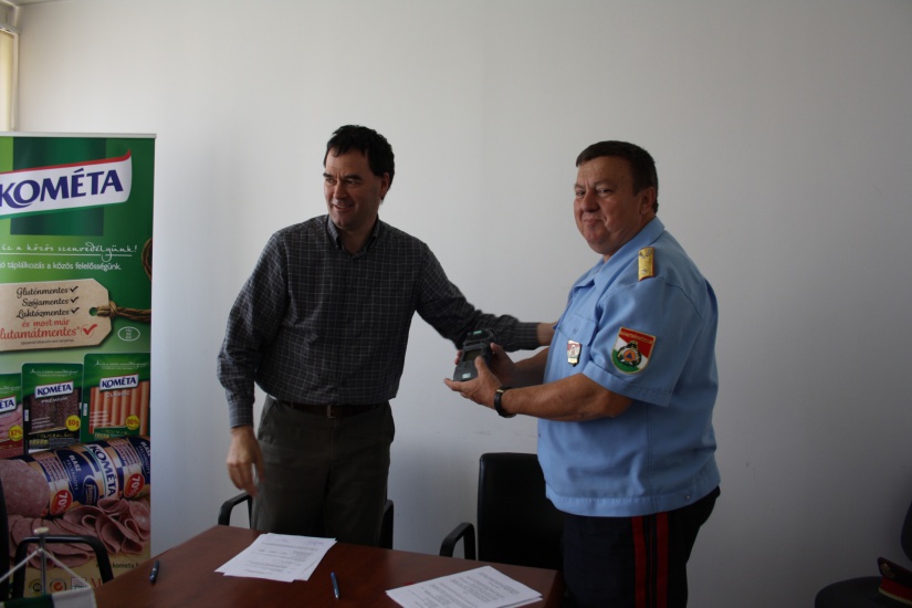 - A készülék működik – jelentette ki a megyei katasztrófavédelmi igazgató, miután hazánk egyik legnagyobb sertésfeldolgozó ügyvezetőjével közösen aláírták a modern, légtérelemző műszer átadásáról szóló dokumentumot. Wéber Antal tűzoltó dandártábornok bemutatta a készülék működését is a sajtó munkatársainak.