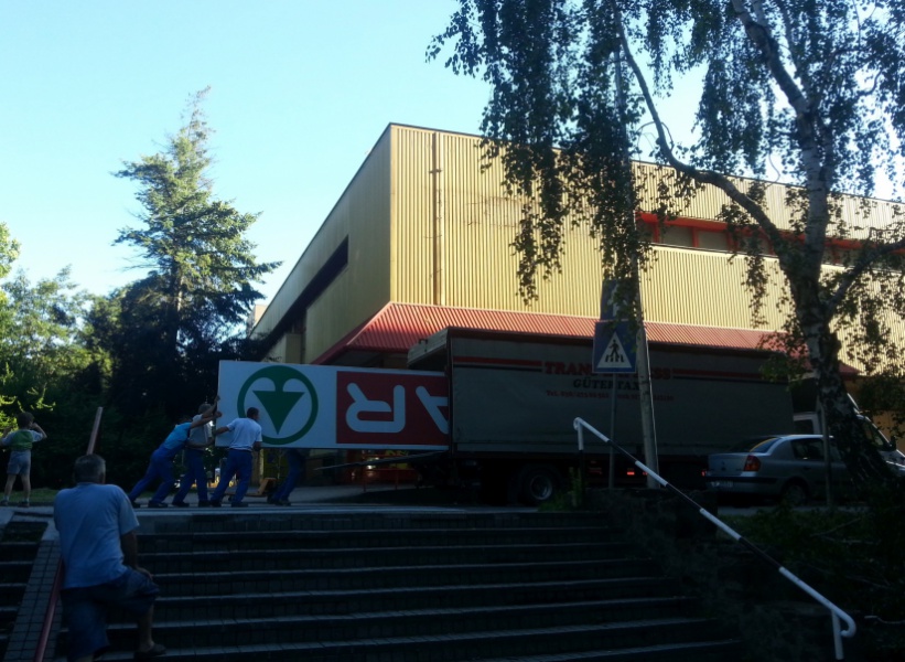 Már a táblát is elcsomagolták, bár az érte küldött jármű pont egy méterrel volt rövidebb.