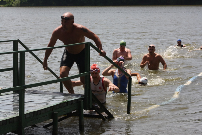 A szombati triatlon indulói a huszonhat fokos vízben rajtoltak el. Volt, aki fejesugrást követően erőteljes tempózásba kezdett, míg mások visszafogottabb, egyenletes tempót választottak az előttük álló hétszázötven méterre. A váltóban induló kerékpárosok és futók kicsit irigykedve szurkoltak társaiknak, miközben a stéghez siettek, ahol az első versenyző már tizennégy perc után ki is lépett a vízből, majd sisakot húzott és kerékpárra pattant.