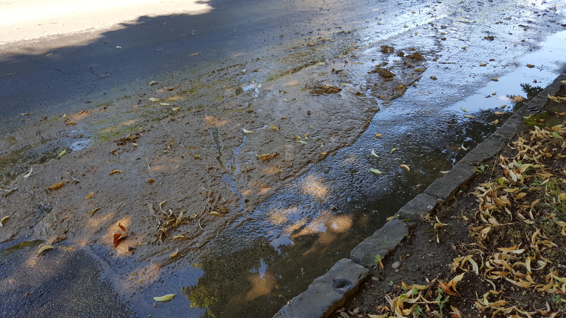 Munkatársunk a helyszínre érve azt tapasztalta, hogy a szennyvíz már nem ömlik, azonban a feldobott trutyi az úton maradt.