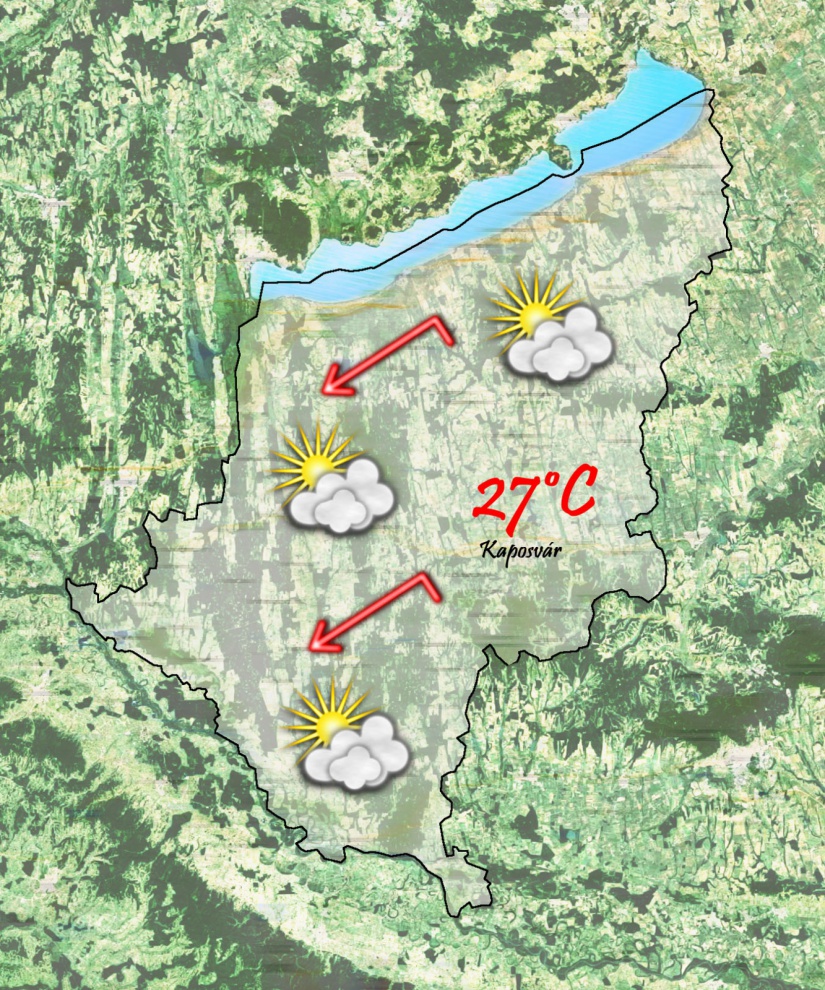 Szerda délután 25°C-ig kúszik fel a hőmérő higanyszála. Változóan, vagy erősen felhős lesz az ég. Nyugodt késő nyárias időre számíthatunk, gyenge északnyugati széllel.