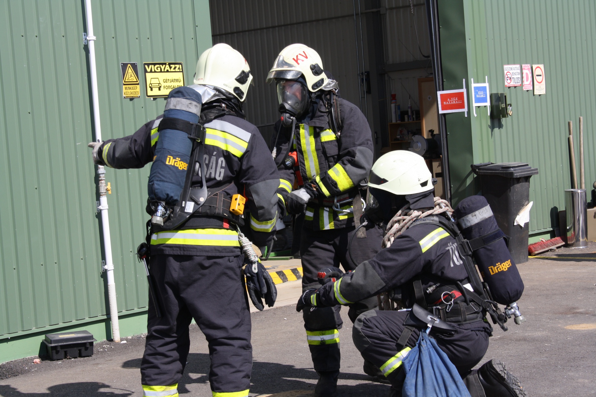 A tűz és a füst által érintett területek határát táblákkal jelölte a szolgálatparancsnok, ezzel szembesült az állomány a műhely ajtaját felnyitva. A szolgálati csoport légzőkészüléket is használat a felderítés során, s gyorsan megtalálta a kábult sérültet imitáló bábut, majd biztonságos távolságba vitte. Ezt követően átvizsgálták az épület többi részét, vízsugarat szereltek, amivel felderítették a tűz környezetét és megkezdték a lángok elfojtását. Az épület mögött található tűzivíz tározóról megtáplálták az egyik gépjárműfecskendőt, gondoskodva a vízutánpótlásról. A munkálatokba bekapcsolódott a KÖTÉL Egyesület is.