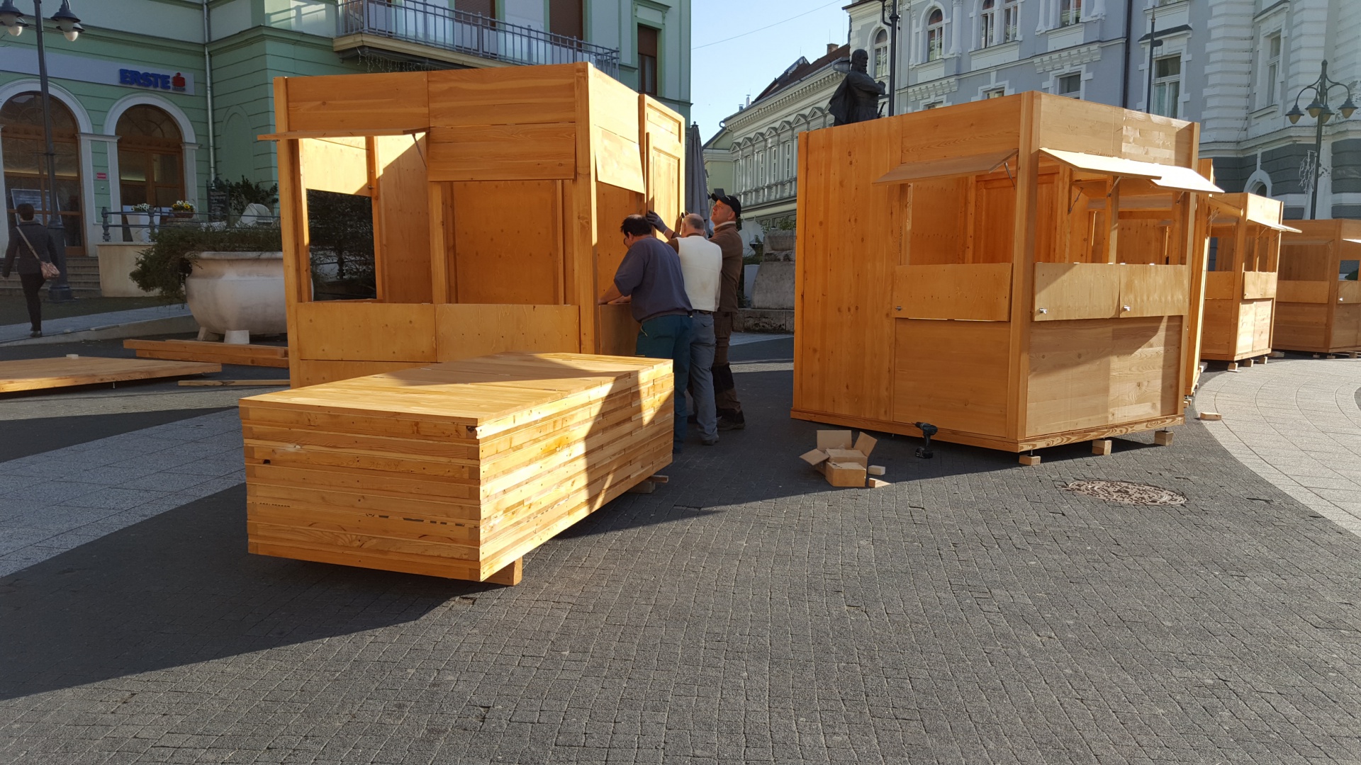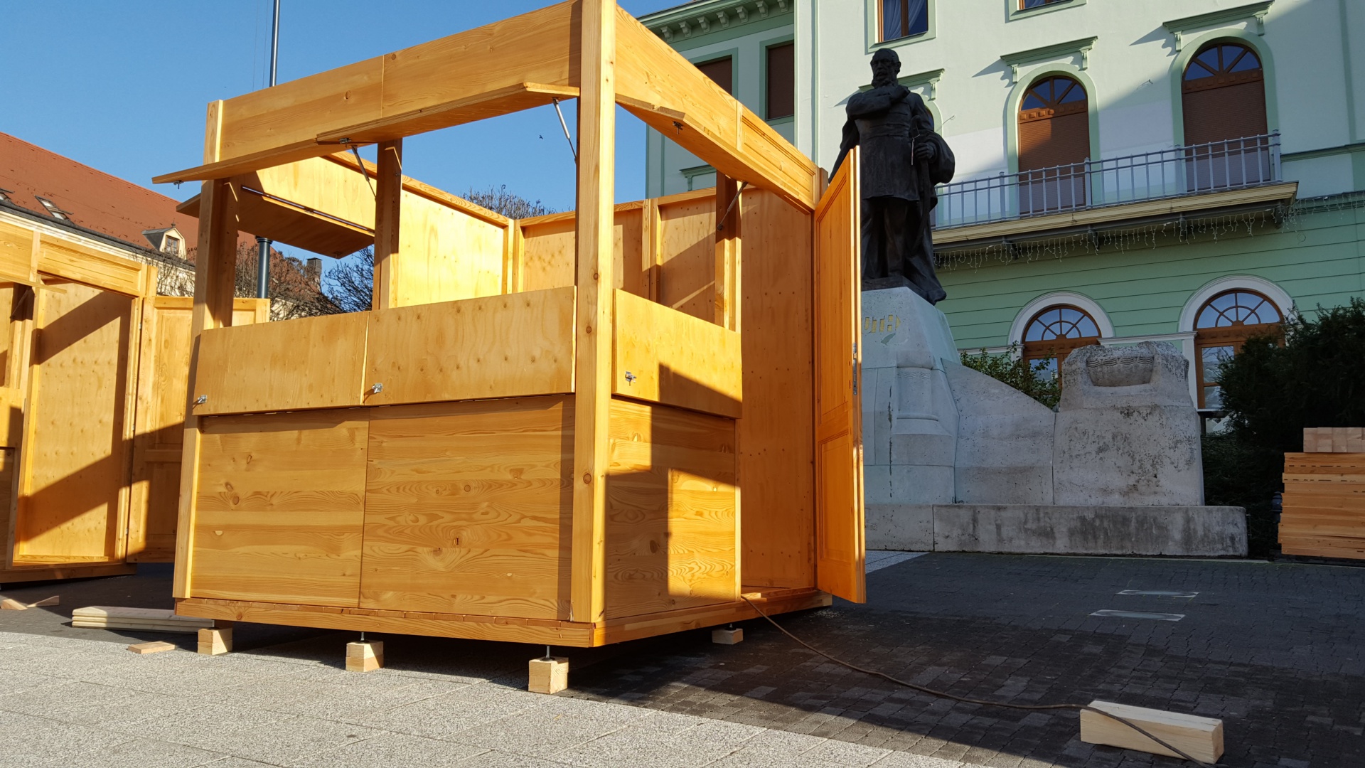 Tizennégy darab 2x2 és öt darab 2x4 méteres faházacska várja a kaposváriakat a Kossuth téren és a sétálóutcán. A vörösfenyőből készült bódékat a napokban szerelik össze.