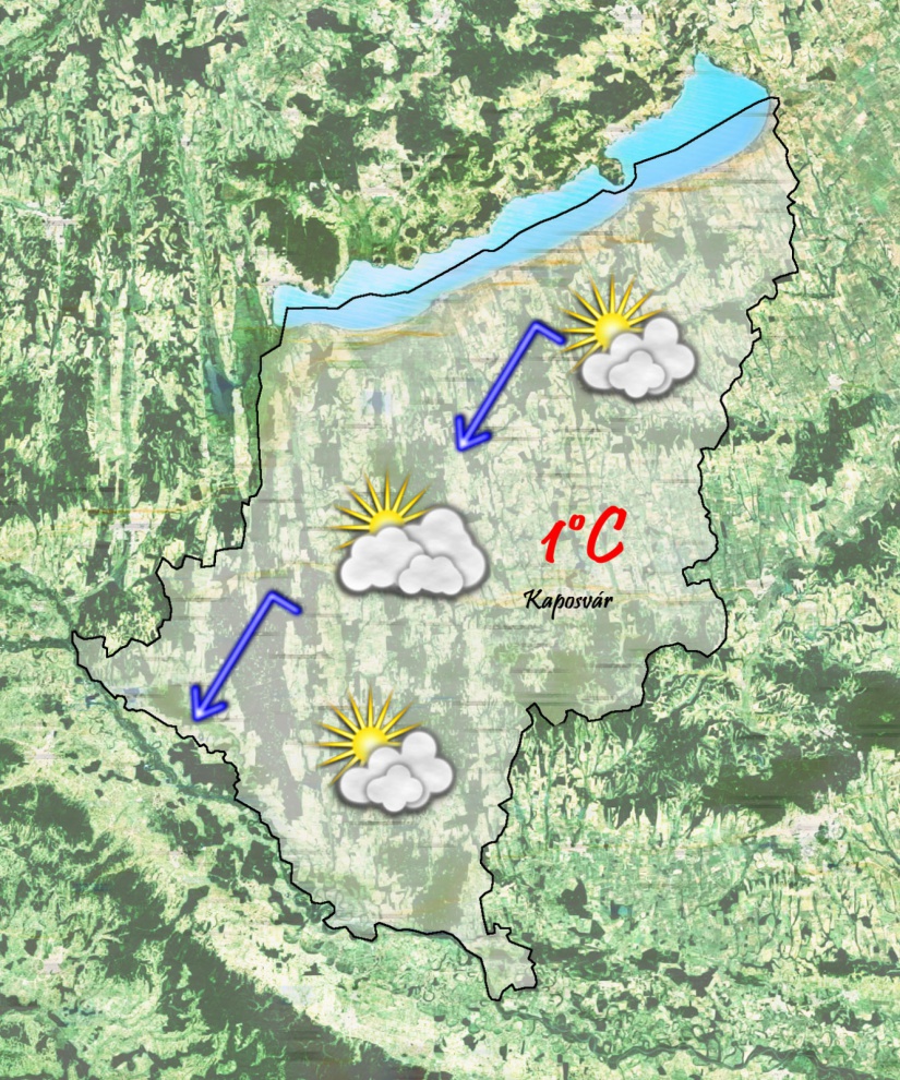 Csütörtök reggelre elkezd csökkenni a felhőzet és 0 °C-ig hűl le a levegő hőmérséklete. Napközben többórás napsütésre számíthatunk gyenge északi szél mellett. 4 °C-ig kúszik fel a hőmérő higanyszála.