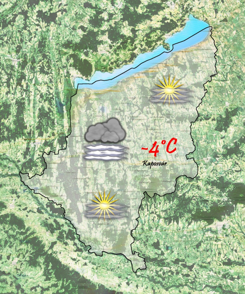 Szombat reggel -13 °C-ig csökken a hőmérséklet a derült ég alatt. Egyre többfelé képződik köd a hajnali órákban. Napközben többórás napsütés valószínű, de ahol a köd megmarad, ott végig borult, szomorkás időre lehet számítani. Délutánra csak -3 °C-ig melegszik a levegő hőmérséklete. Gyenge déli szél fog fújni.