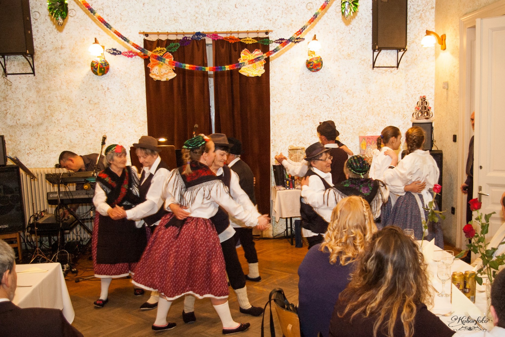 Märcz Zoltán főszervező köszöntő szavaiban jó szórakozást kívánt mindenkinek, majd az Ecsenyi Hagyományőrző Egyesület fellépésére került sor, akik régi sváb táncokat mutattak be és nyitották meg a bált.