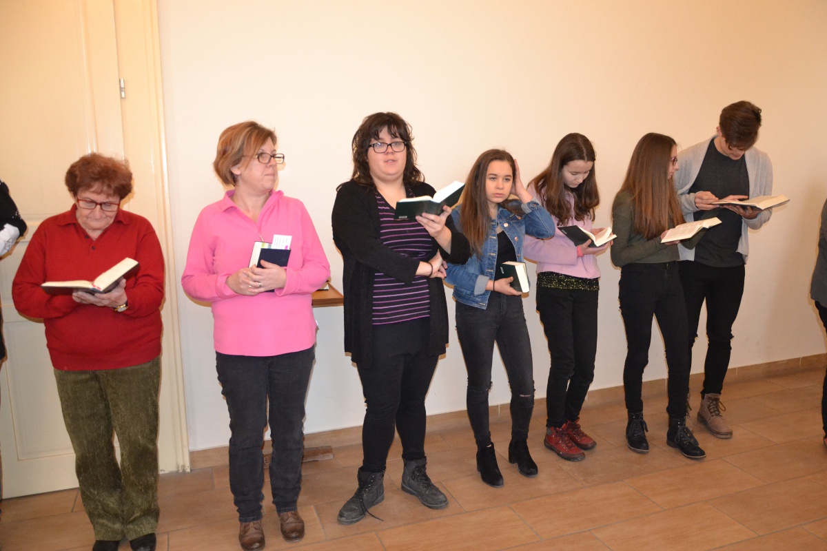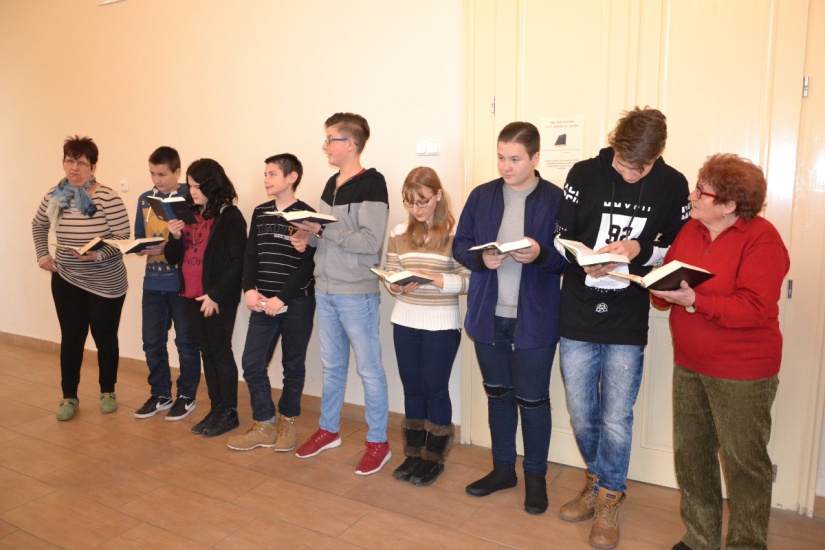 Ezen gondolatok jegyében kedden a tanítási nap során az iskola kisebb-nagyobb diákjai, pedagógusai, minden tanítási óra kezdetén 1-1 kijelölt igeszakaszt olvastak fel. Még az óvodás legkisebbek is bekapcsolódtak a közös olvasásba az óvónénik segítségével.