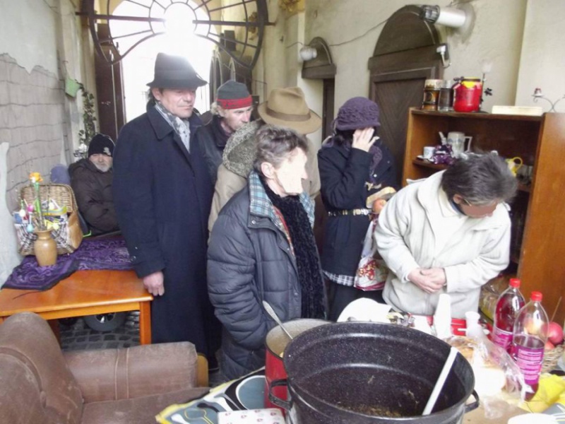 Judit napi egy órát áldozott arra, hogy a rászorulókat fogadja. Nem csináltak rendetlenséget, csak ettek és beszélgettek, ezúttal rendezett körülmények között, leülve, kényelmesen.