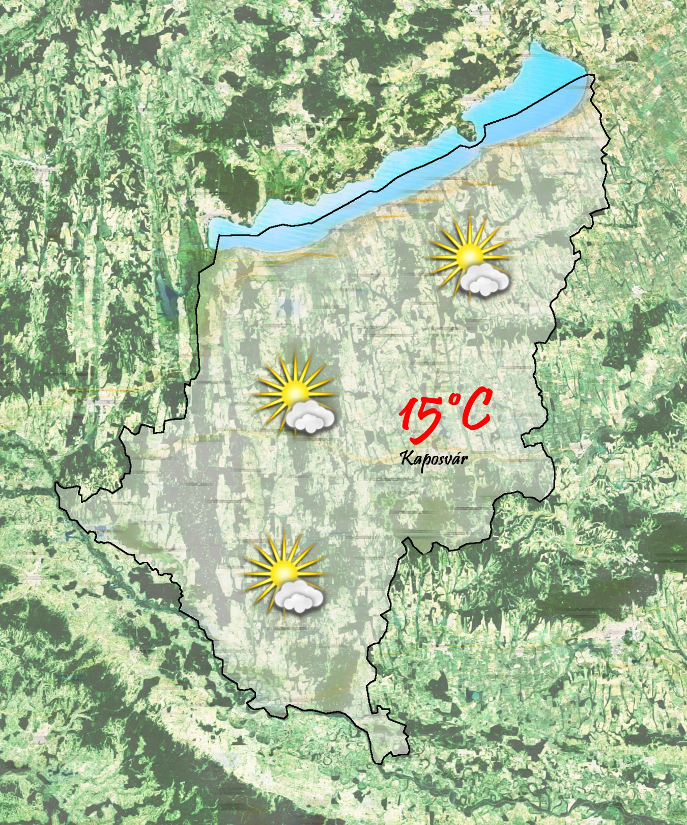 Péntek délután változóan felhős, napos idő valószínű, 20 °C-ig kúszik fel a hőmérő higanyszála. A lehűlést már jelzi a gyenge északnyugati szél, emiatt kicsit hűvösebbnek fogjuk érezni a levegőt.