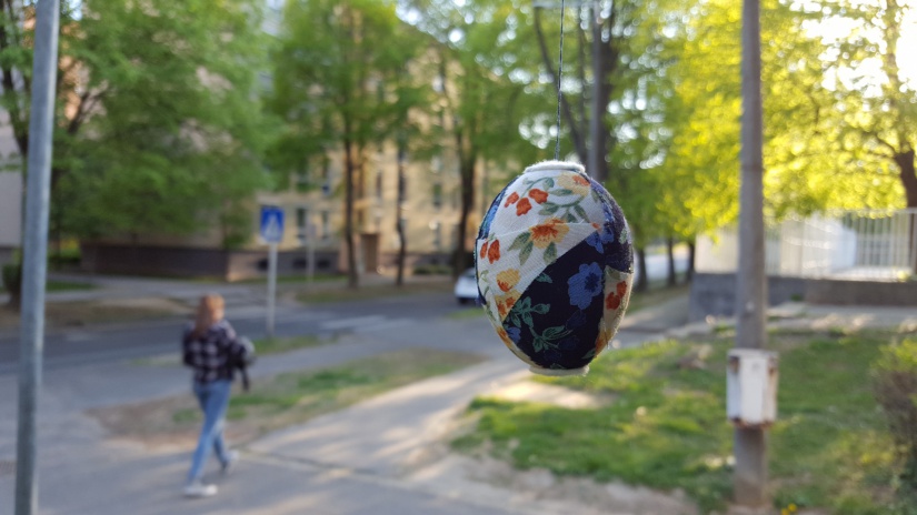 Fán lógó színes tojásokra figyeltünk fel minap a Béke utca elején. Valószínűleg a környéken élők díszíthették fel a fát, minden esetre nekünk tetszik.
