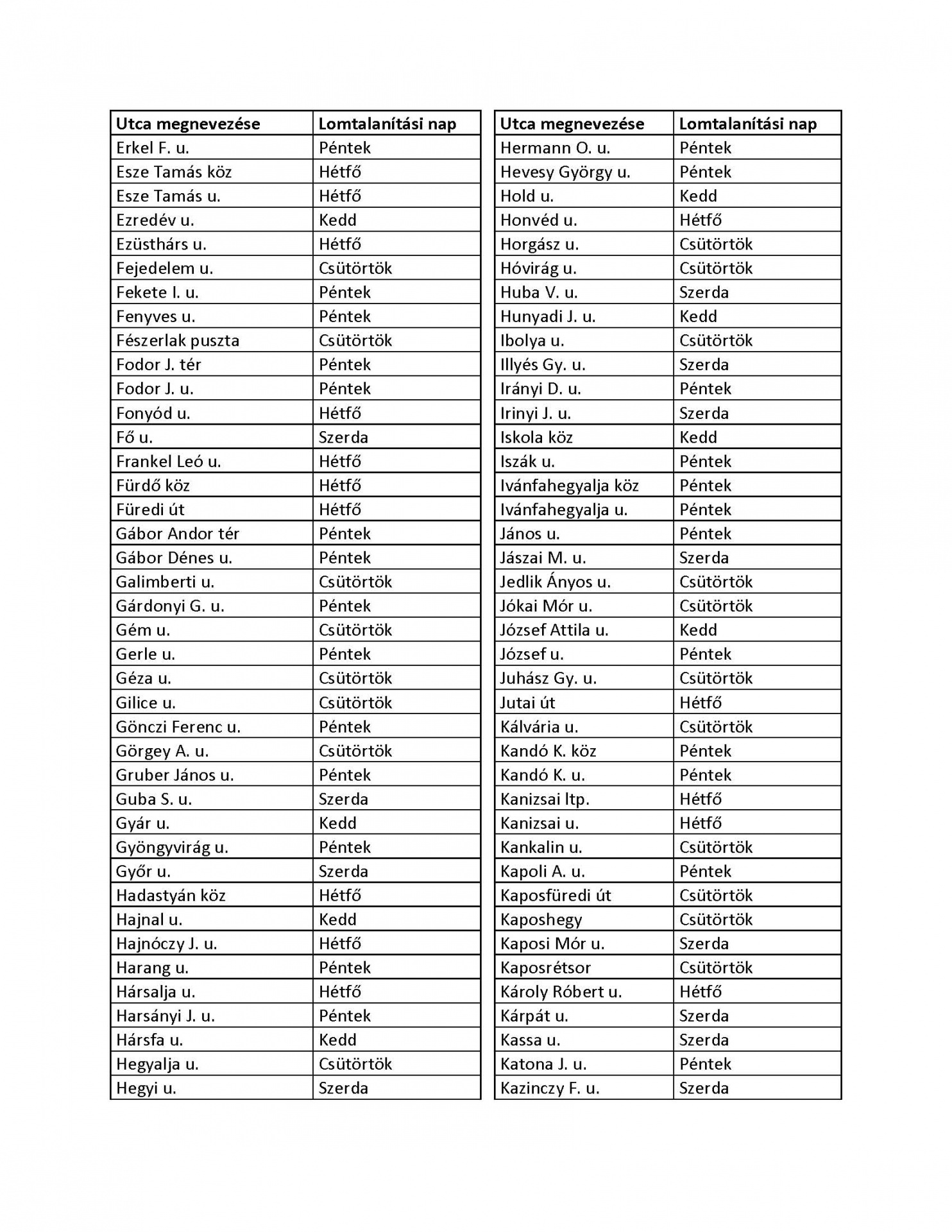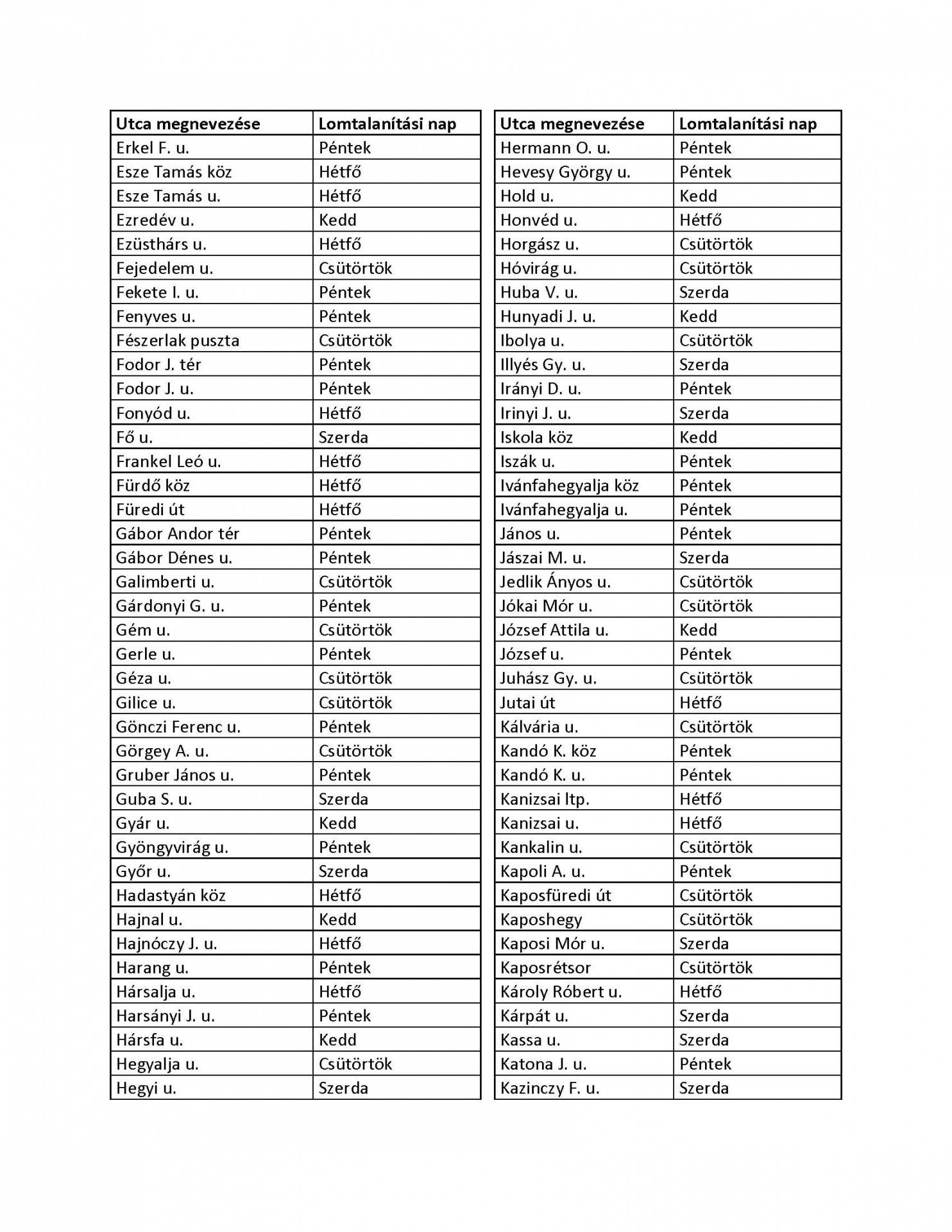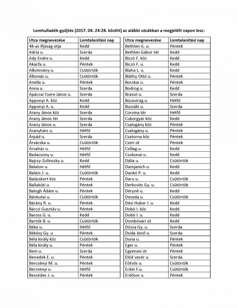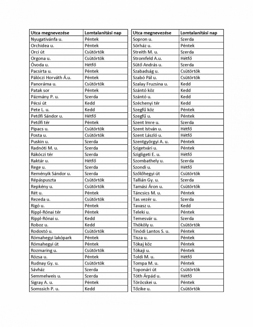 Mutatjuk a pontos utcalistát, hogy hol, mikor kell kihelyezni a lomhulladékot:
