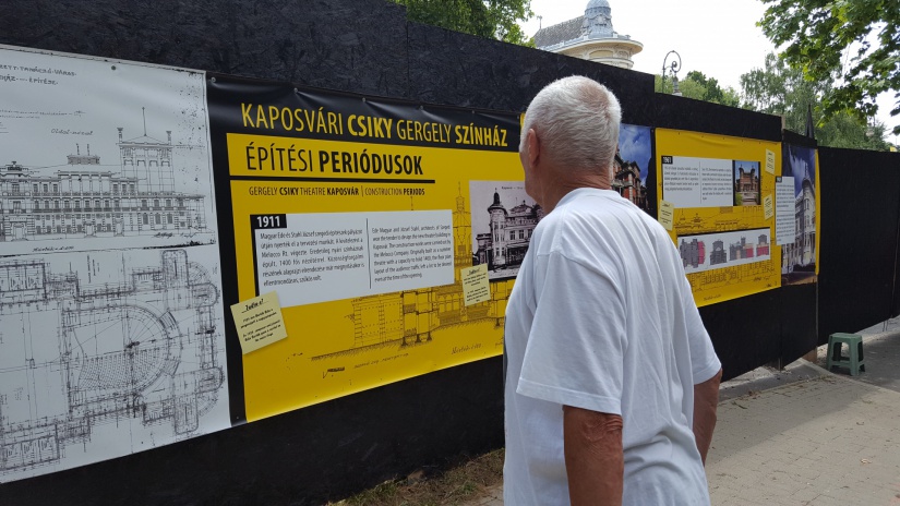 A gazdagon illusztrált plakátokon a színház történetéről, a felújítás periódusairól és némi kulisszatitkokról láthatnak illetve olvashatnak érdekességeket a járókelők magyar és angol nyelven - tudtuk meg L. Balogh Krisztinától, a város főépítészétől.