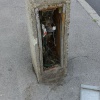 Ma is rápillantottunk, egy fokkal jobb a helyzet, de még így sem tökéletes. Egyébként nem egyedi a probléma, a többi oszlopon is gyorskötözőkkel vannak odaerősítve a fedelek.