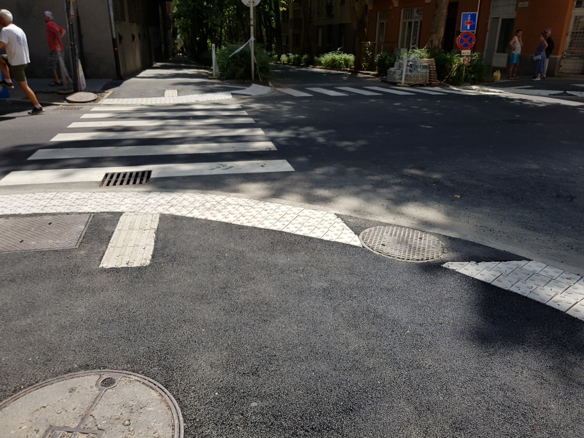 Csütörtökön már a parkolóhelyeket és a zebrákat festették fel az ott dolgozók, de a járda szélét és a gyalogátkelőt is szépen szintbe hozták egymással a Kossuth és a Bajcsy-Zsilinszky utca kereszteződésénél, ami a babakocsival, vagy kerekesszékkel közlekedők számára jelentősen megkönnyítheti az átkelést az úttesten.