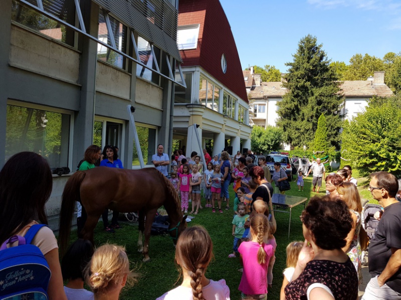 A Takáts Gyula Megyei és Városi Könyvtár előtt a Somogy Megyei Katasztrófavédelmi Igazgatóság tűzoltóautó bemutatója és a Kaposvári Rendőrkapitányság rendőrségi felszereléseinek bemutatása és kipróbálása, valamint a Bűnmegelőzési csoport Technikai bemutatója várta a kicsiket csütörtökön délelőtt. Ezek után érkezett meg Gina, a Korona Póni Klub lova, majd a Vattacukor Zenekar Kölyökbugi című nyárbúcsúztató koncerjét hallgathatták meg a gyerekek.