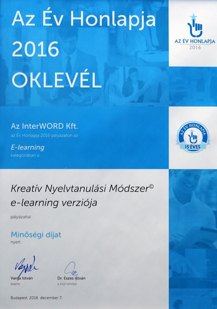 - Tényleg igaz, hogy tavaly novemberben a Kreatív Nyelvtanulás online gyakorló programját az év honlapja díjkiosztón Magyarország legjobb nyelvoktató honlapjának választották?