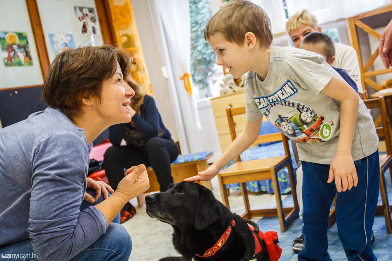 A kicsik a játékos foglalkozáson közelebbről is megismerhetik a kutyust. A terápiás kutyák alkalmazása egyébként egyre jobban elterjed az országban.
