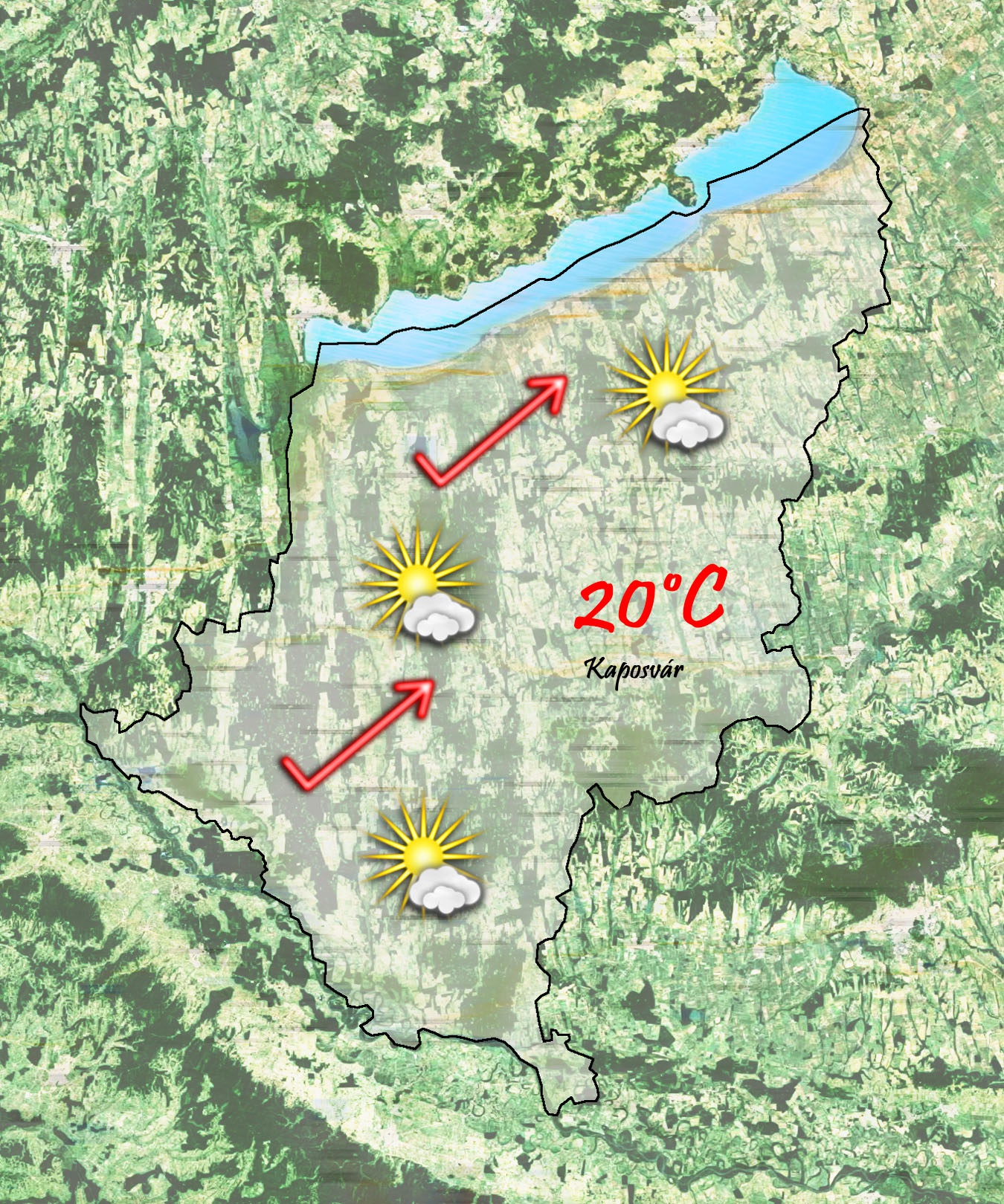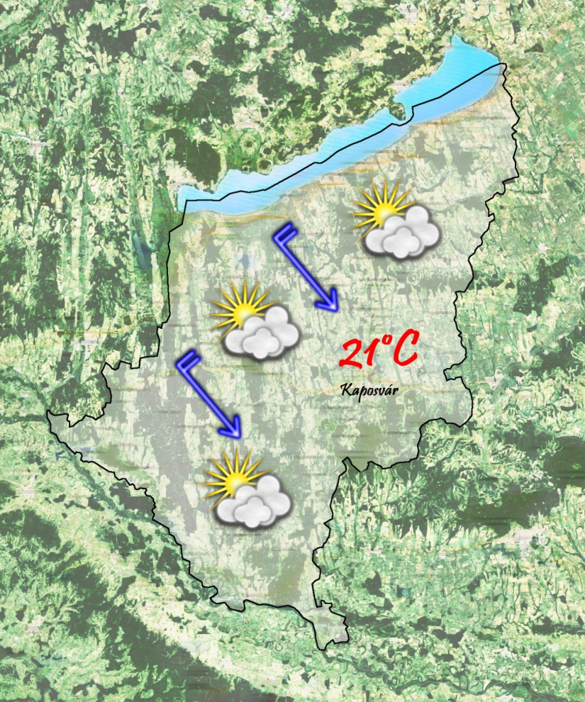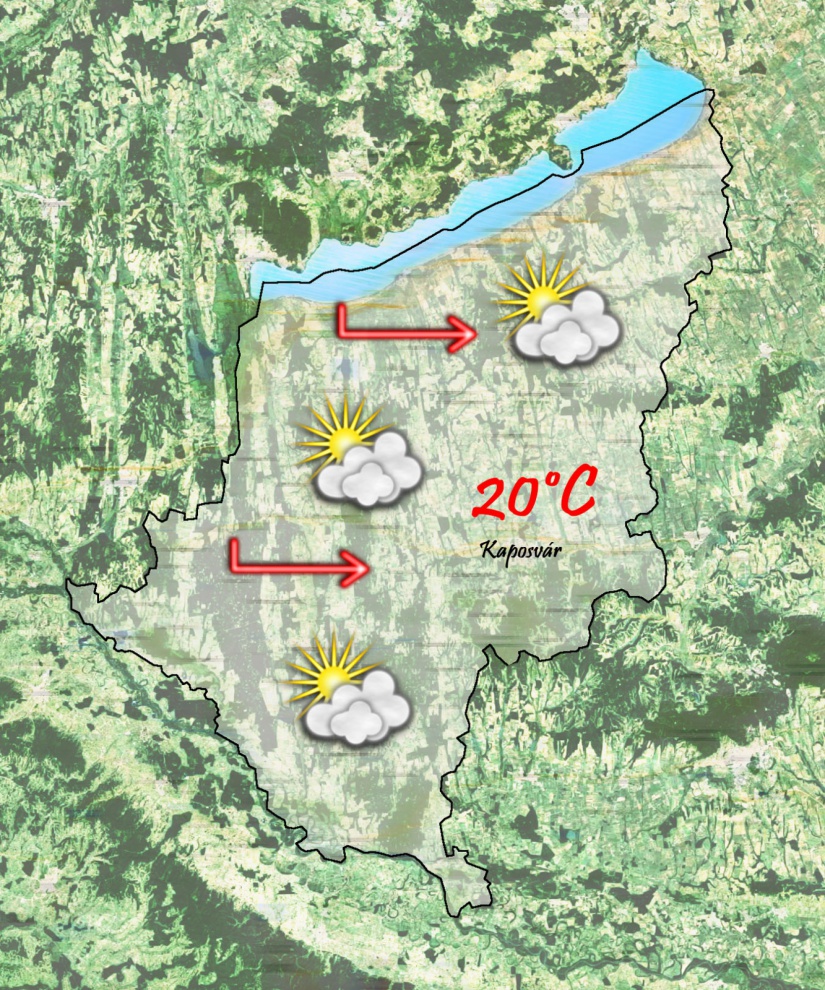 Szerda délután változóan felhős idő várható. 20°C-ig melegszik a levegő. Csapadékra nem kell számítani. Gyengén fog fújni a délnyugati szél. Igen kellemes, őszies időben lehet részünk.