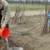 Ültetés előtt vágjuk vissza a gyökereket, hogy a földbe helyezés után a friss vágások mentén hamarabb terjeszkedjenek. A frissen ültetett fát locsoljuk meg jól, hogy a víz bemossa a földet a gyökerek közé. Felkupacolva, kis hantba rendezve egy karóval érdemes megtámasztani a fát, amíg nem rögzül. Ha szeretnénk trágyázni a földet, figyeljünk rá, hogy a gyökerek ne érintkezzenek a trágyával, mert az bomláskor felmelegszik, és a gyökerek könnyen megfőhetnek.
