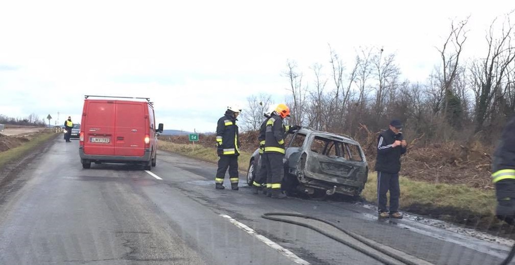 Kigyulladt egy személygépjármű a 67-es úton Mernye és Somogyaszaló között.