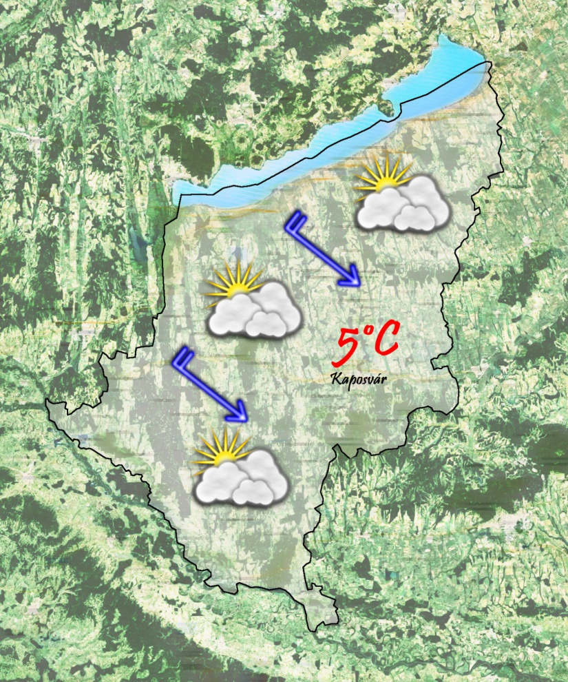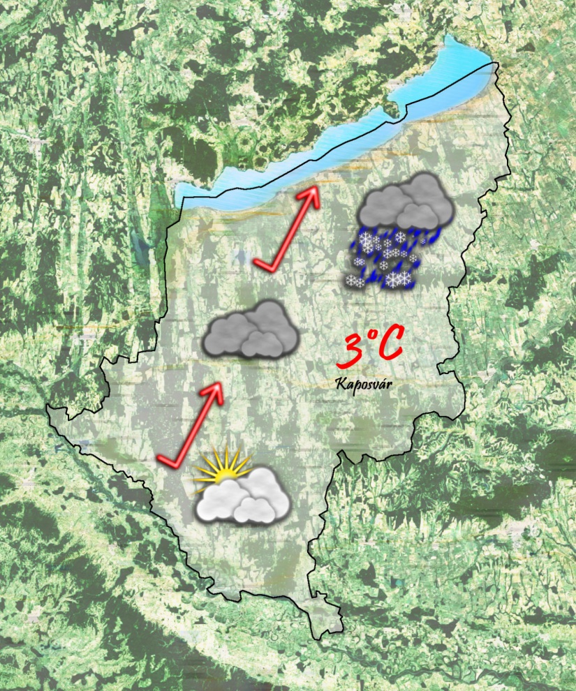 Csütörtök reggel -4°C-ig csökken a hőmérséklet. Napközben borult, vagy erősen felhős idő lesz. A szél feltámad délnyugat felől. Délután 3°C-ig kúszik fel a hőmérő higanyszála. A kezdeti gyenge hószállingózás később esőbe válthat át.